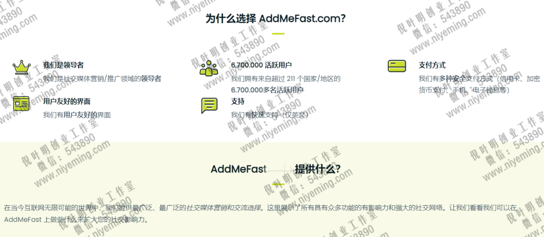 addmefast是一个社交媒体营销平台,其实本质上它属于中介平台,因为发布任务的并不是平台方,而是那些有需求的用户。那么自然也为了满足广告商的要求,其他想要获利的用户可以直接通过这个平台去接取任务。