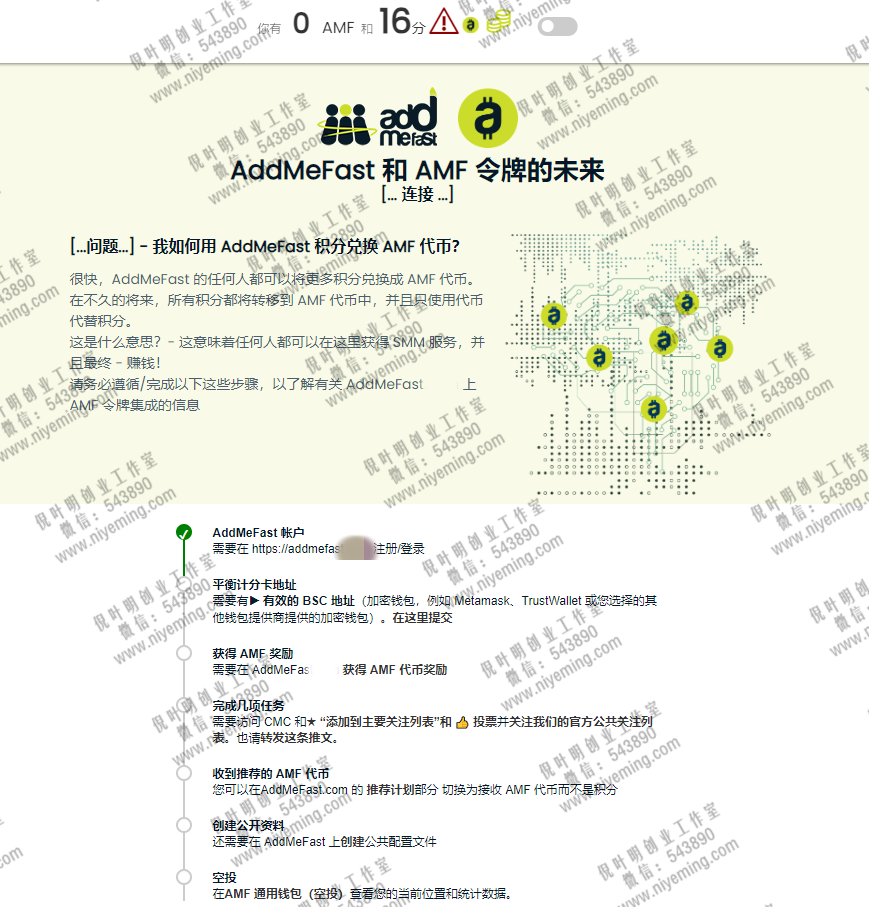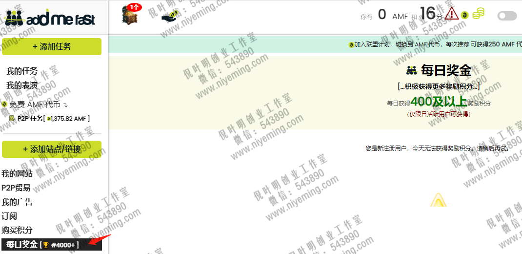 同样这个平台存在区块链模式,当我们在这个平台完成任务后,就可以获取积分,而积分可以直接兑换成这个平台的加密货币AMF,所以今天就教大家如何操作这个平台的任务。