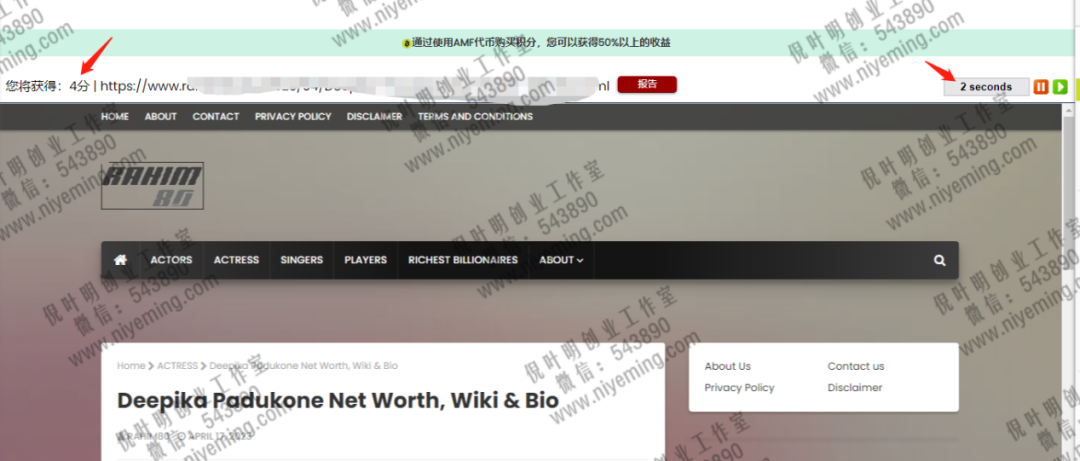 如果你没有各种社交账号的话,那么可以选择浏览网站来获取积分。因为这个任务基本上可以说是自动的,只要你打开页面后,左侧就会直接弹出时间,而右侧则是任务倒计时,只要倒计时结束,你就可以获取到积分。