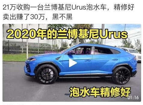 就拿上图2020年的兰博基尼urus来说吧,这个车就算是水泡、火烧,单单是一套手续价格可能都要大几十万以上,20万根本买不到。